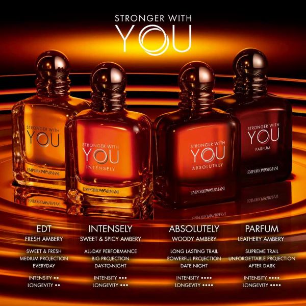 Emporio Armani's Stronger With You is a popular line of men's fragrances known for its warm, spicy, and gourmand DNA, centered around a signature sugar-coated chestnut accord. Launched in 2017, the collection is designed to represent modern love and confident elegance